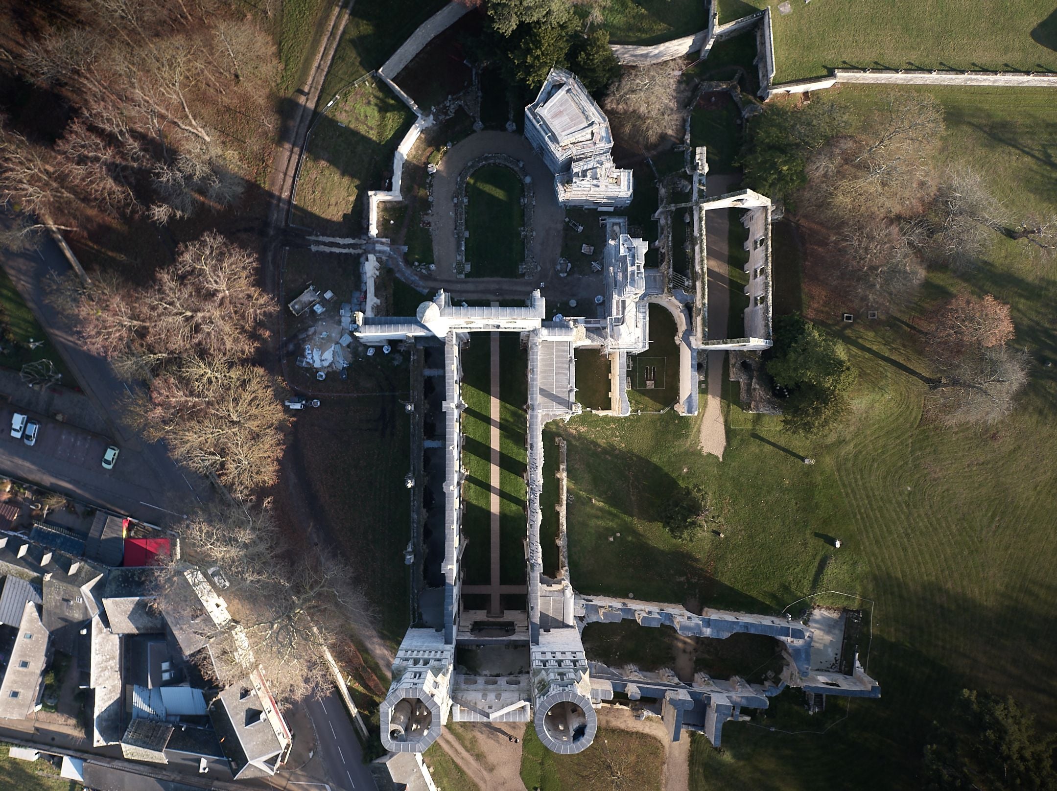 Vue aérienne de l'église Notre-Dame de Jumièges, 2018