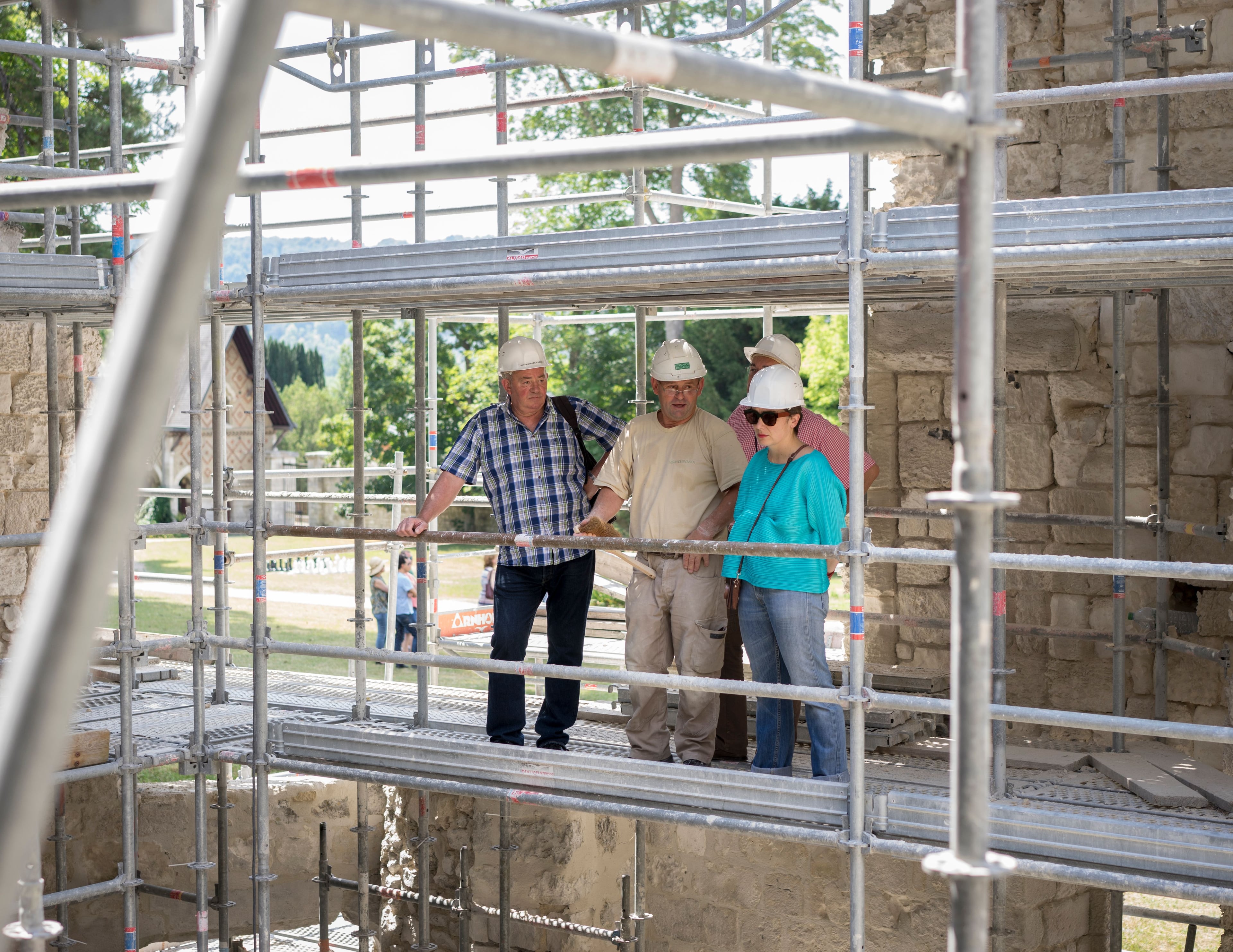 Réunion de chantier dans le grand cellier de l'abbaye de Jumièges, 2017