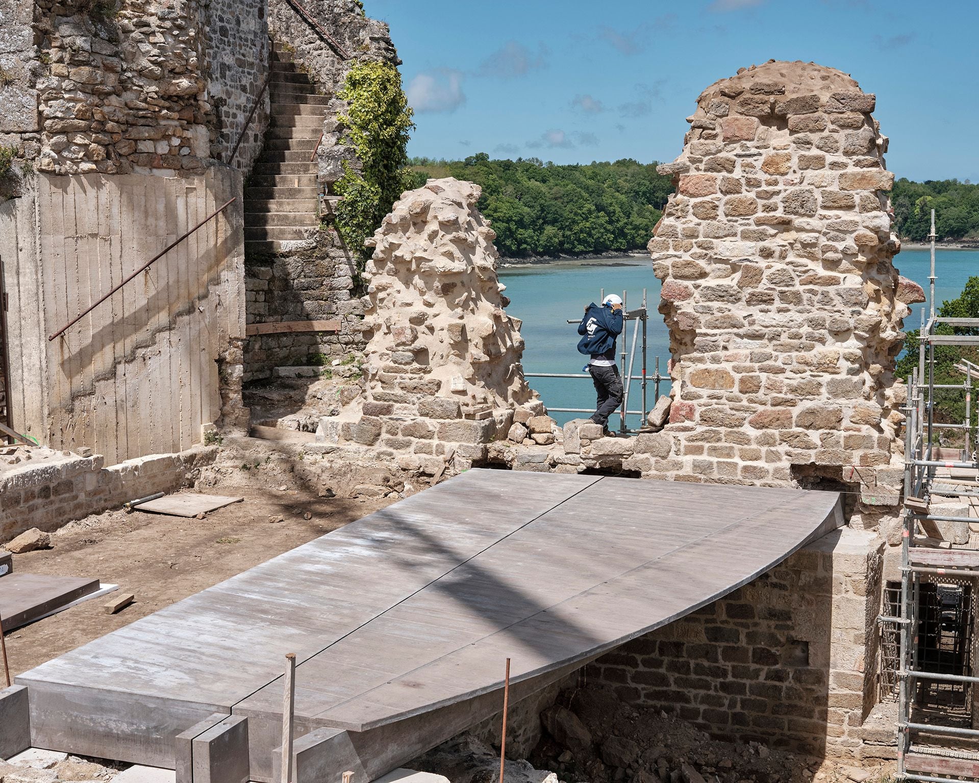 Installation des planchers de visite au château du Guildo, 2021