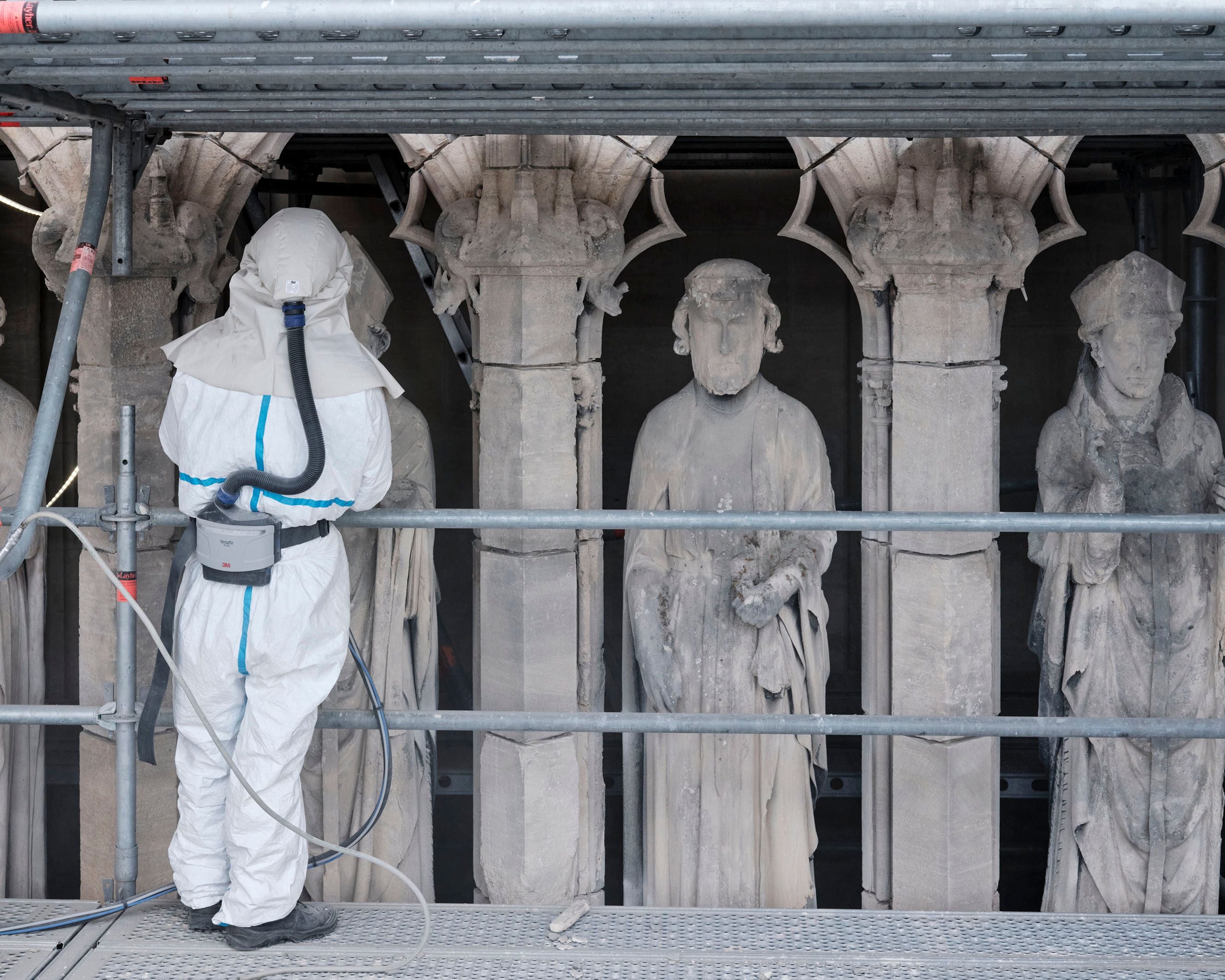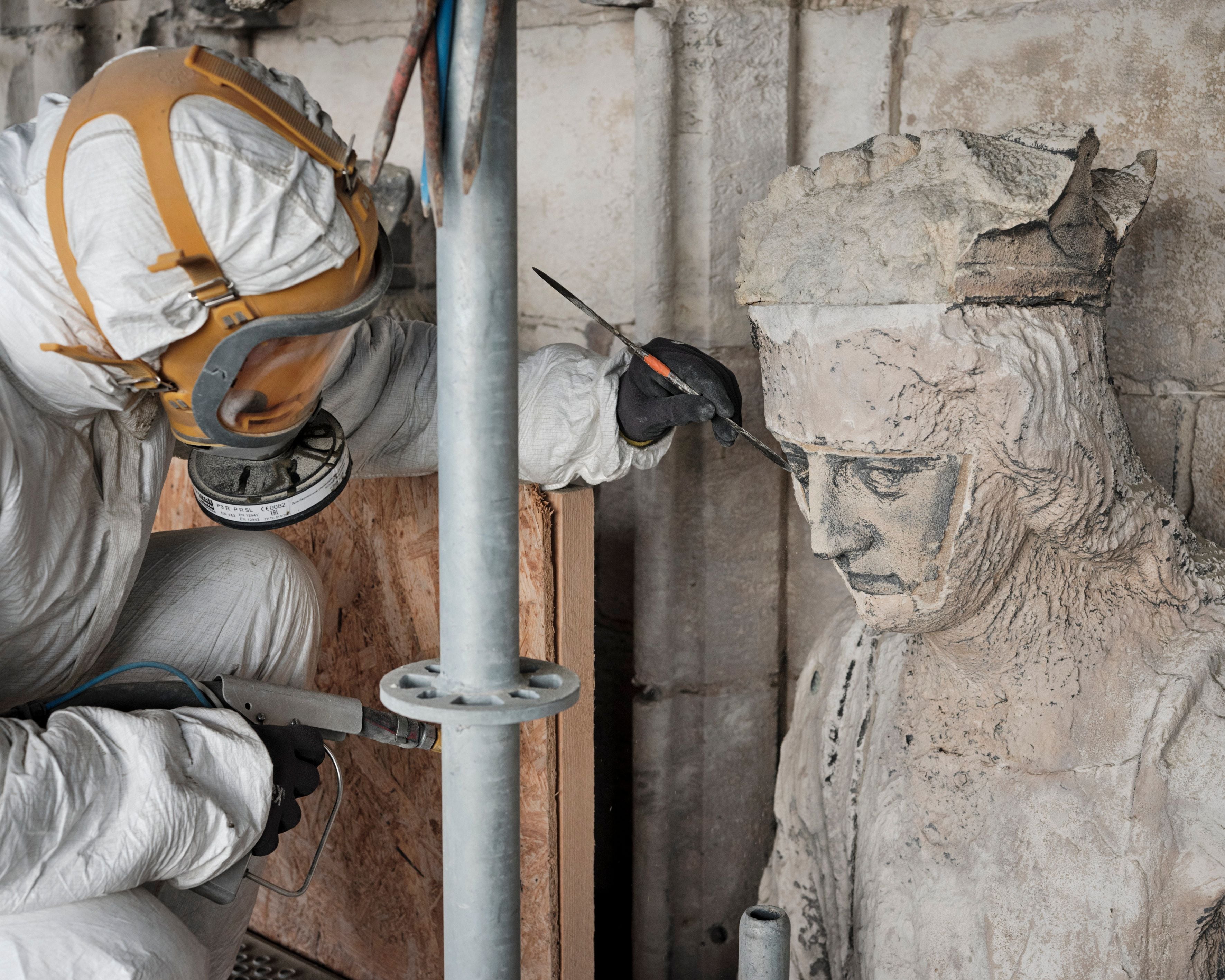 Restauration des statues monumentales de la façade occidentale de l'abbatiale Saint-Ouen de Rouen, 2023