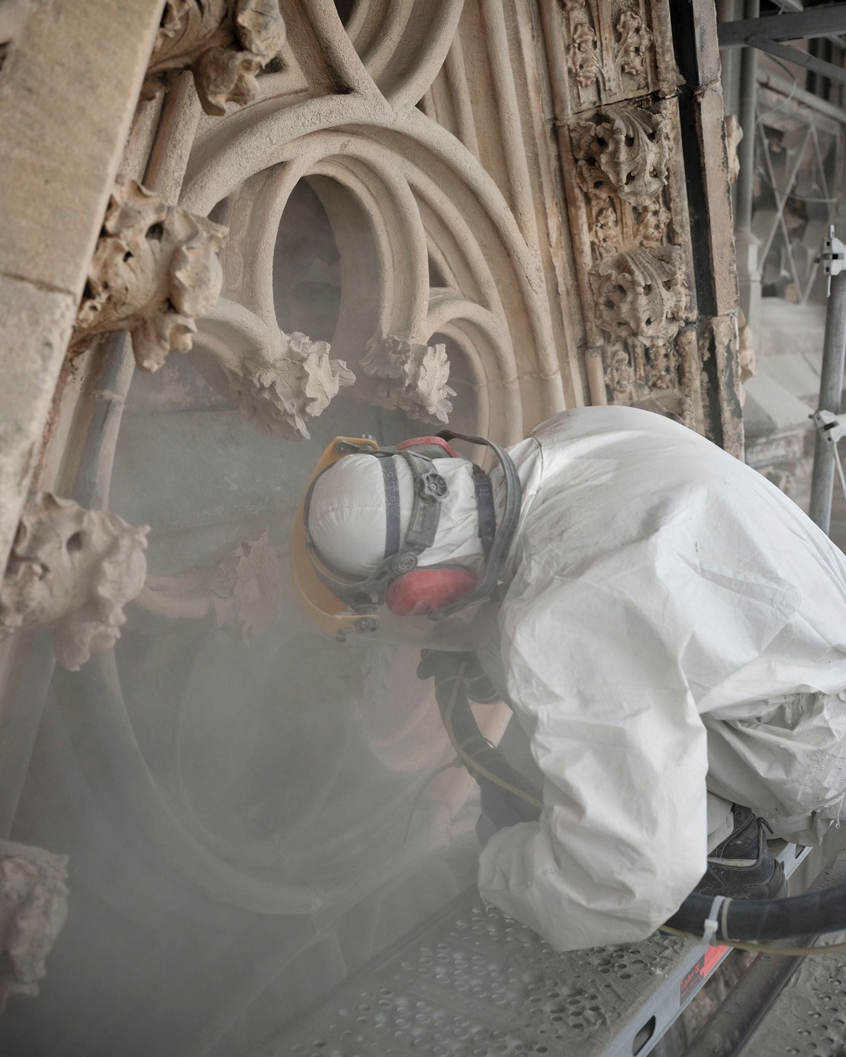 Nettoyage des parements du massif occidental de l'abbatiale Saint-Ouen de Rouen, 2023
