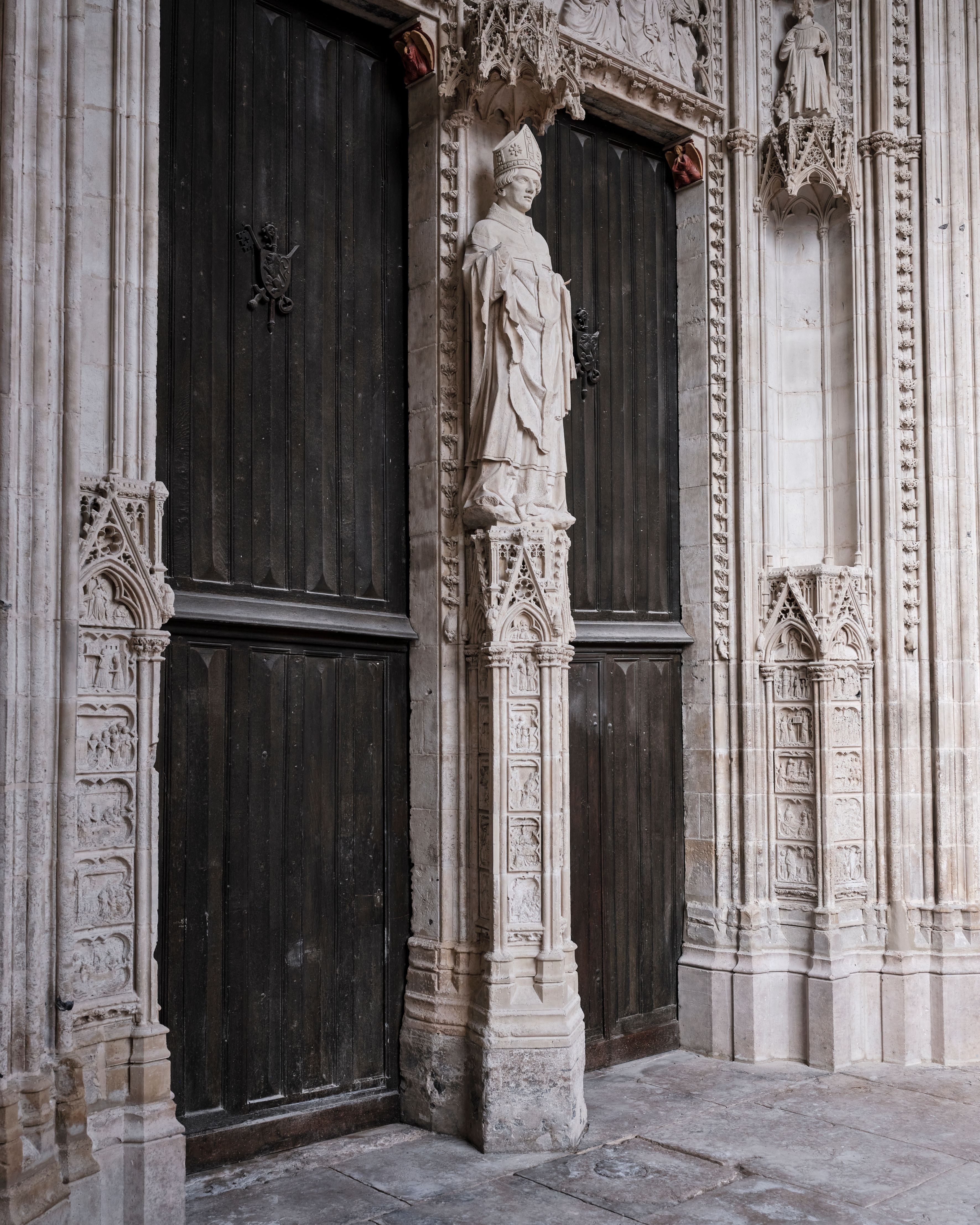 Détail du portail des Marmousets: Trumeau de Saint-Ouen, 2024
