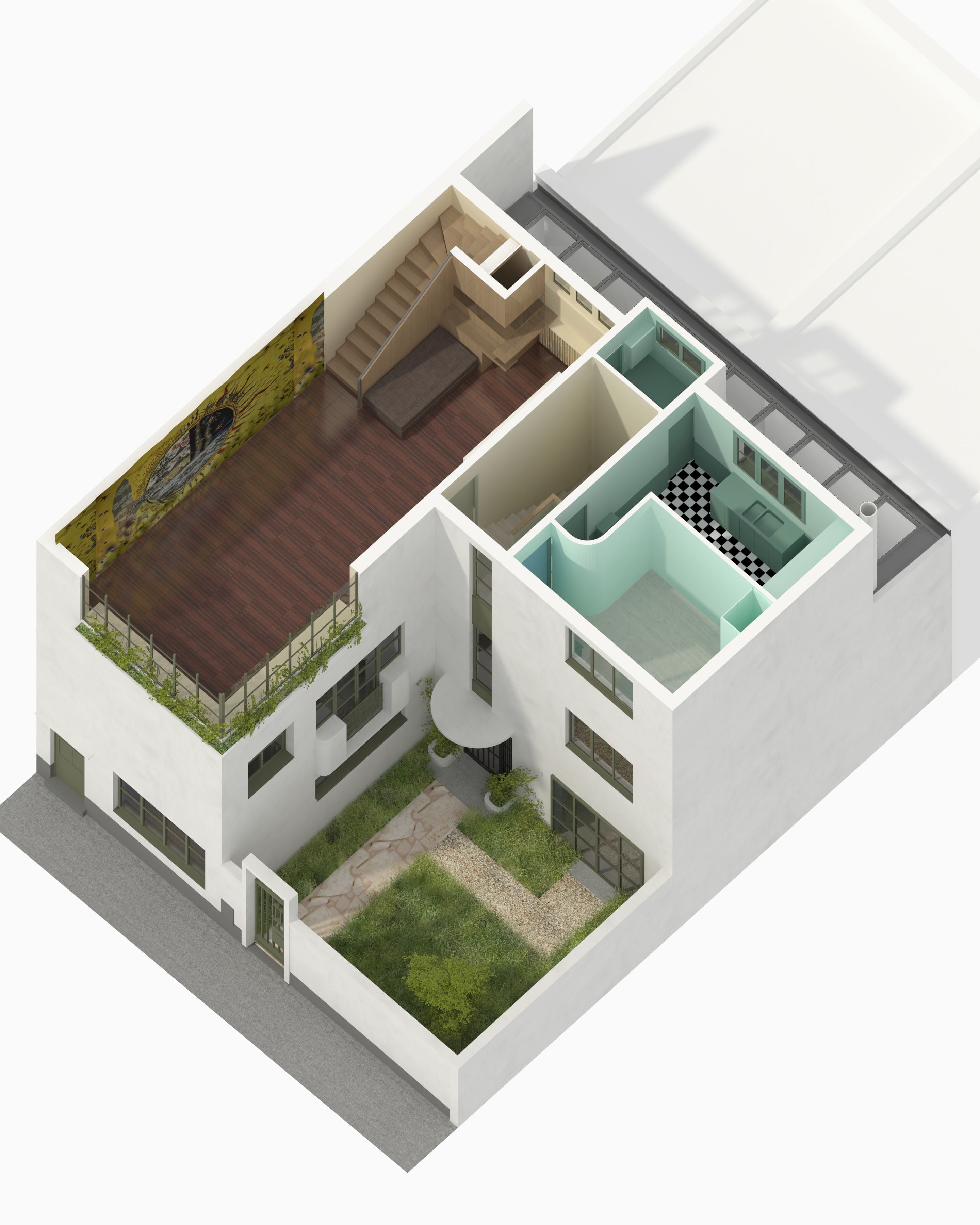 Vue axonométrique du projet de restauration de la maison-atelier Jean Lurçat