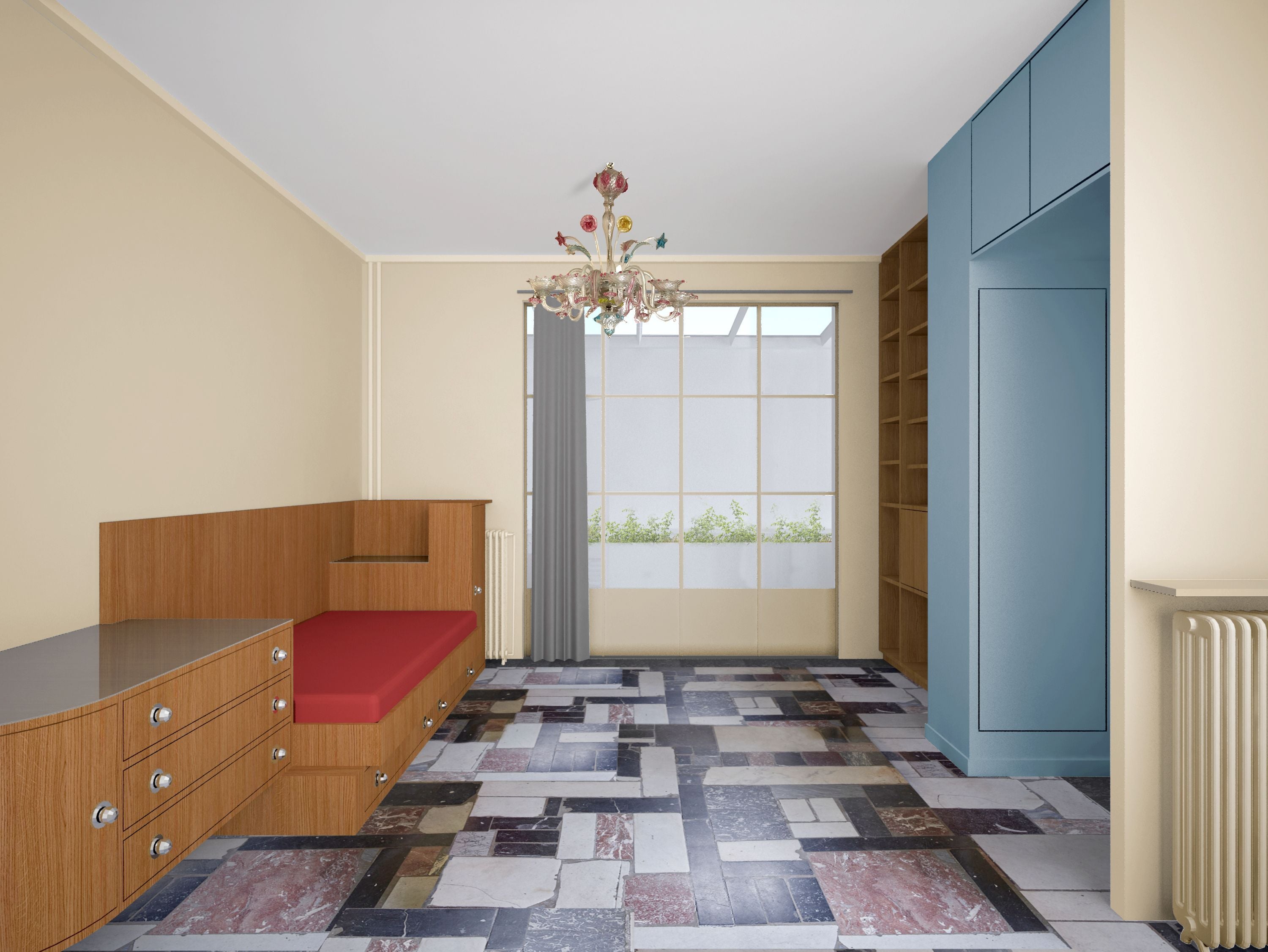 L’état actuel de la maison-atelier Lurçat résulte d’une série de modifications mises en œuvre entre 1925 et 2000, et notamment : la construction d’une surélévation, conçue par André Lurçat, en 1929 ; l’ajout de grilles forgées aux fenêtres du rez-de-chaussée, en 1956 ; le remplacement des menuiseries originale en 1960 et la création d’un ascenseur en 2000. Le parti de restauration que nous proposons s’emploie à restituer l’état de 1929, correspondant à l’aboutissement du projet d’André et Jean Lurçat de créer une « architecture-manifeste » totale, où les dispositions spatiales, l’agencement du mobilier et des œuvres sont le résultat d’un long processus créatif. Afin de compléter le parcours de visite par un espace de déambulation et d’exposition, les espaces à l’arrière de la maison seront réaménagés et une verrière permettra de pratiquer la cour à couvert, en préservant l’intégrité des volumes de la maison-atelier.